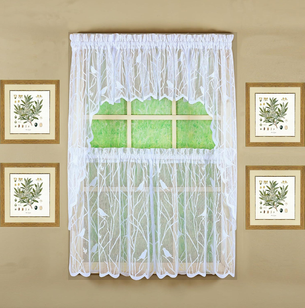 This classic knitted lace features birds, berries, leaves & vines against a simple sheer background. It will be a beautiful way to brighten any room with abundant natural light.
