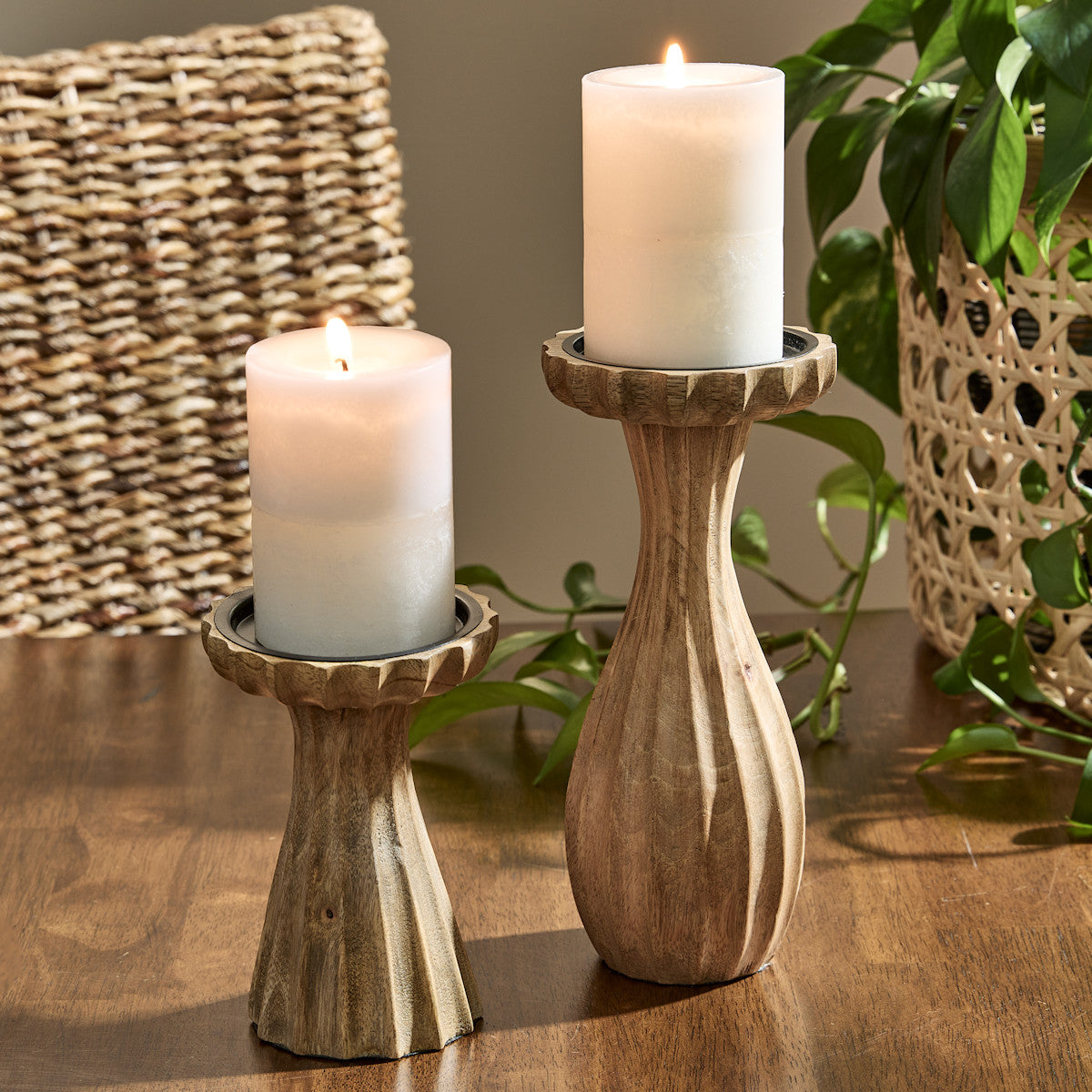 Add rustic charm to your home with these beautiful fluted mango wood pillar candle holders. The grain of the wood makes each piece unique and the fluted design adds texture and visual interest. Purchase them for yourself or they will make the perfect gift for just about any occasion!