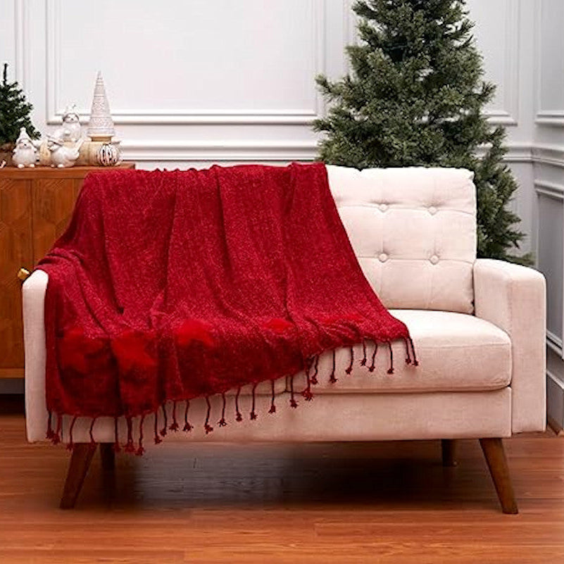 Crafted from a soft butter chenille, this festive throw features a tufted silhouetted star design on a solid red background. Grab it for snuggling on those chilly evenings and of course, it would make the perfect gift.
