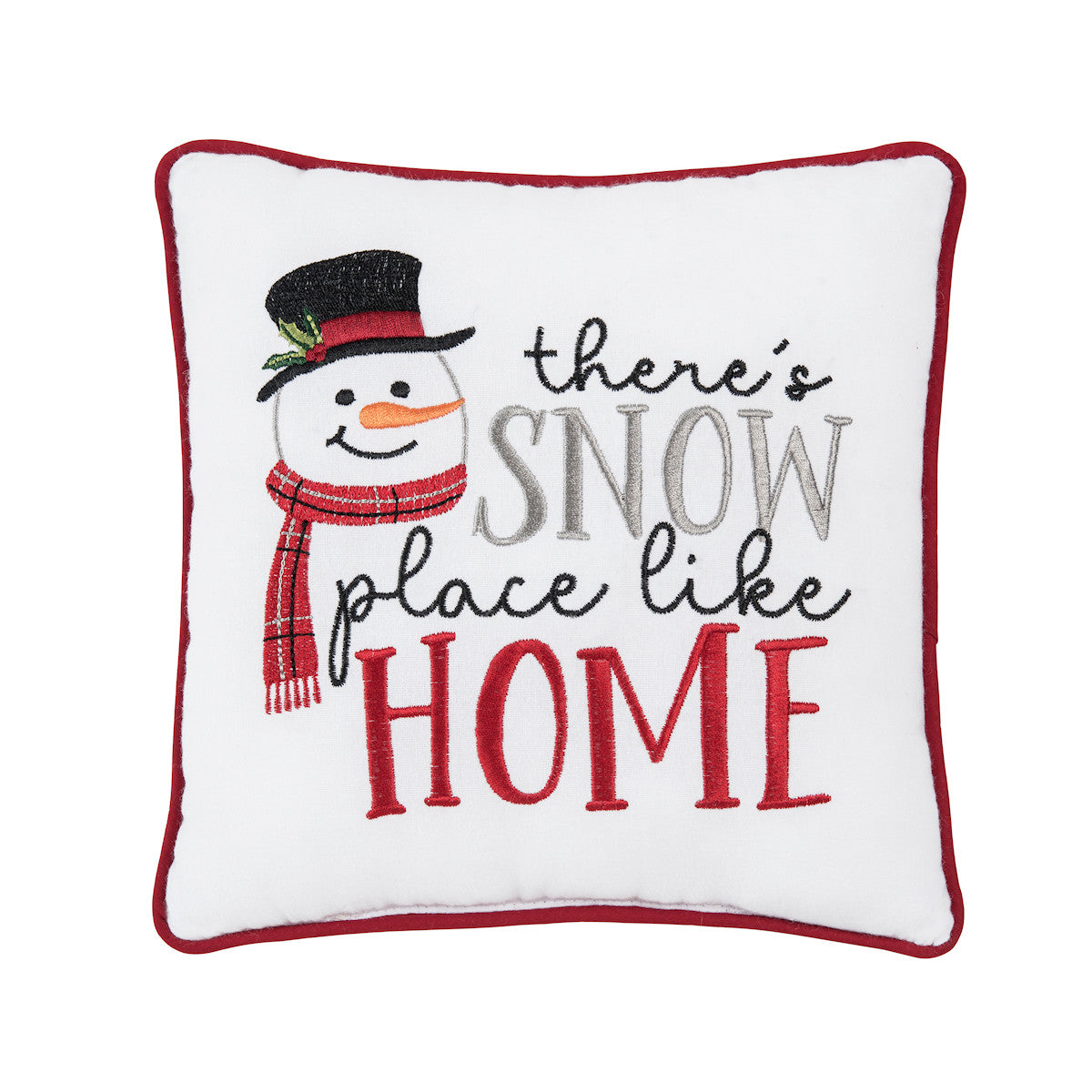This holiday-themed mini pillow from C & F Home will brighten any space in your home. It features a happy snowman dressed in his best Christmas attire!