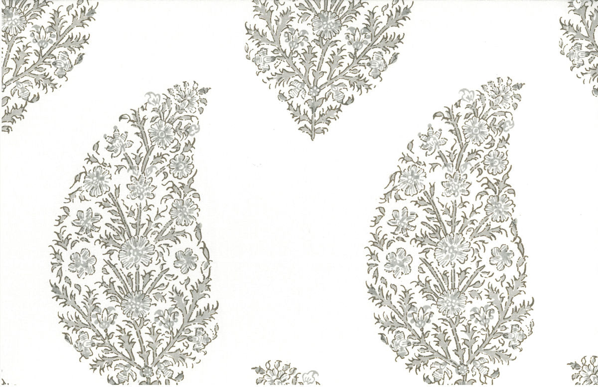 This beautiful fabric in neutral shades of tan and grey is inspired by a hand-block motif from a 19th century Persian wall hanging. Made of cotton, it can be used for multiple home decorating projects.