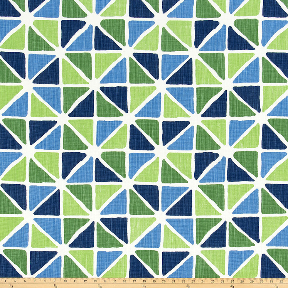 This heavyweight fabric is suitable for draperies, decorative pillows, headboards, upholstery or any decorating project you might have in mind. The geometrical design in shades of blue and green will add a touch of color to any room in your home.