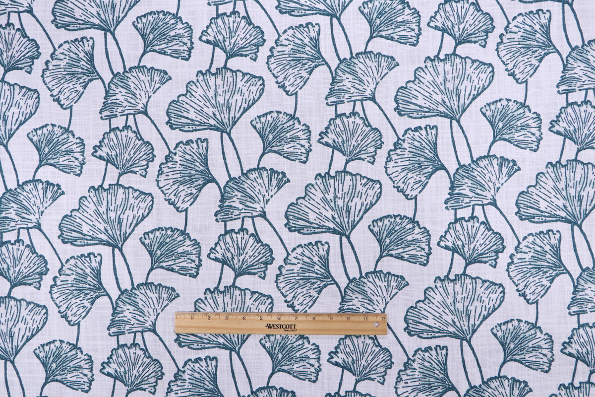 The Doris fabric from Premier Prints features a pretty printed leaf design in dark blue & white. Made from cotton, it would be perfect to use for window treatments, bedding or other lightweight upholstery.