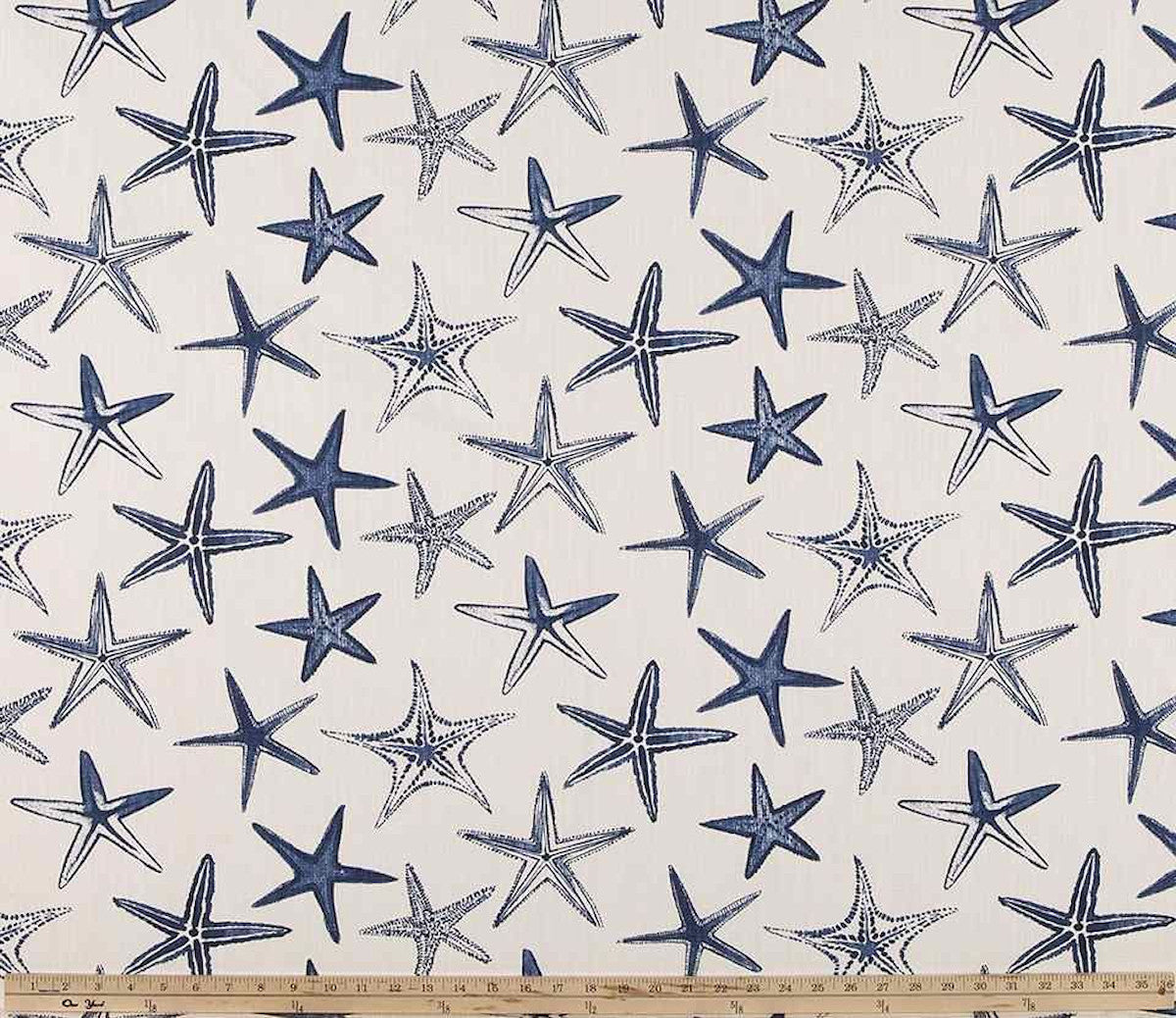 This coastal-inspired heavyweight fabric is suitable for draperies, decorative pillows, headboards, upholstery, or any decorating project you might have in mind. The marine print features starfish scattered throughout the cotton/linen blend fabric.