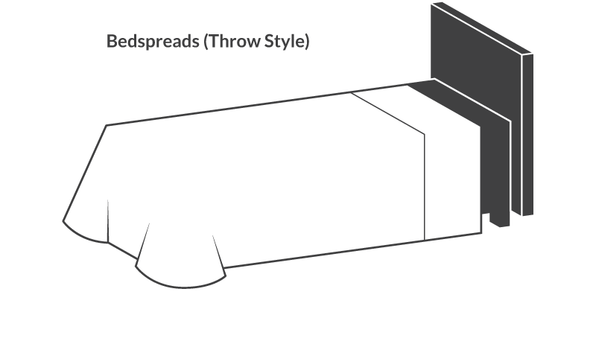 Throw StyleThrow style bedspreads can be made of woven or quilted materials that cover the bed all the way to the floor. Bedspreads are great for those who desire a traditional look in their bedroom. Throw style spreads hang over the bed and are generally sized to reach down to the floor. They come in a variety of weights, materials and pattern choices to complete the look of bedroom.