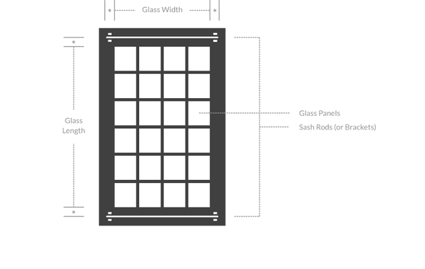 When surface mounting sash rods or brackets for door-mounted blinds or shades, it is recommended to set the brackets a minimum of 2” out and above the glass width and length.